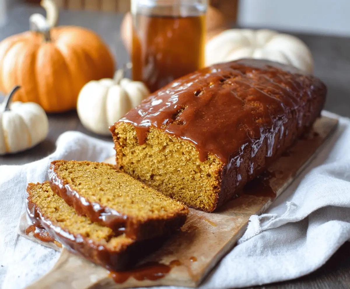 Let the glaze set for a few minutes before slicing the bread. Now, enjoy your delicious, moist, spiced pumpkin bread with rich brown butter flavor and sweet maple glaze!