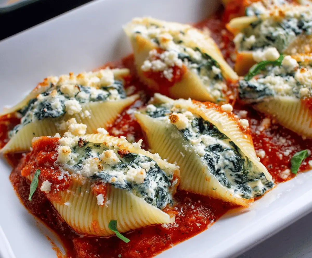 Enjoy these warm, cheesy, spinach-filled shells with a side of crusty bread or a simple green salad for a delightful meal!