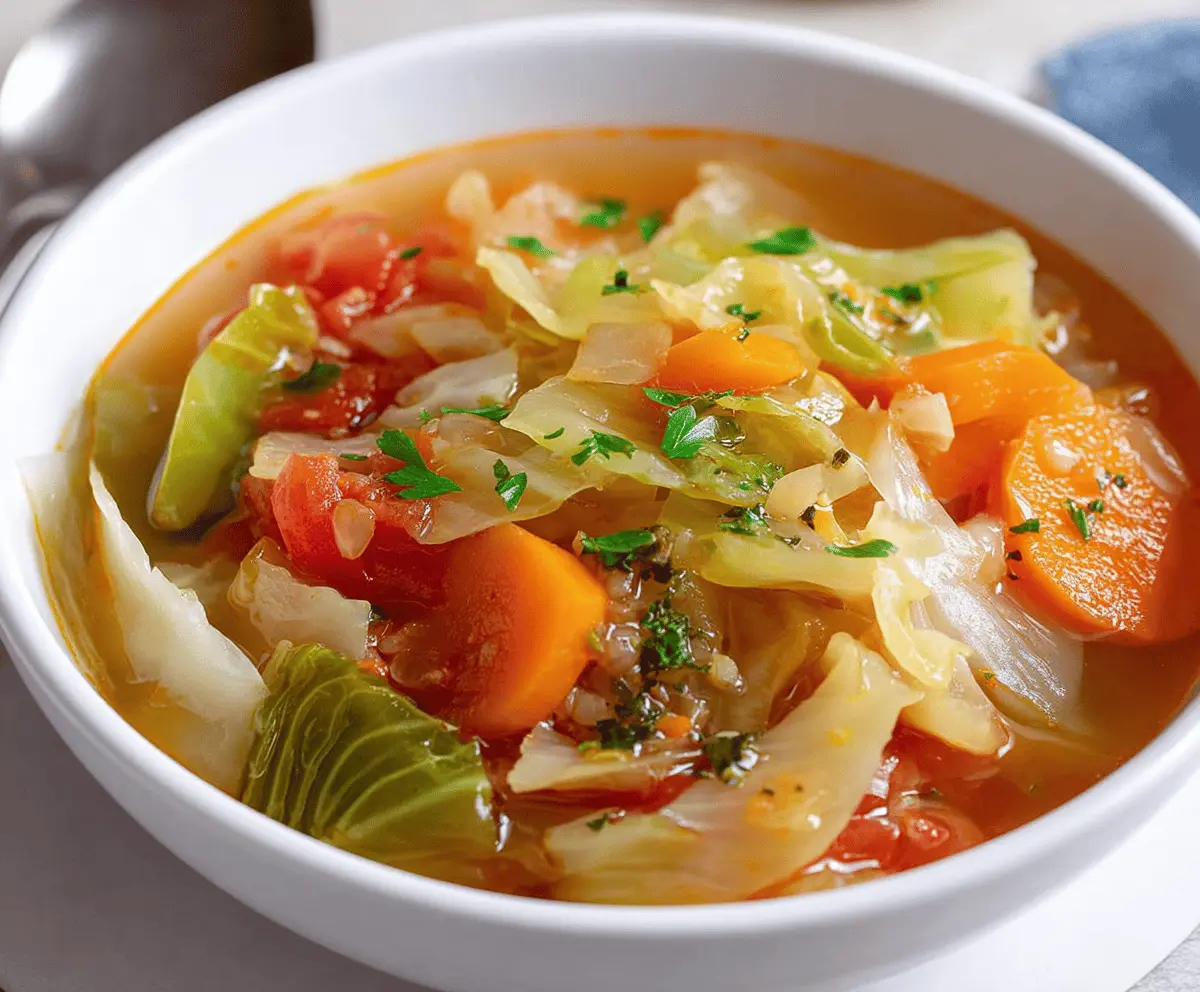 Serve your hearty and healthy cabbage soup hot, garnished with freshly chopped parsley for a lovely touch. Enjoy this comforting bowl of goodness!